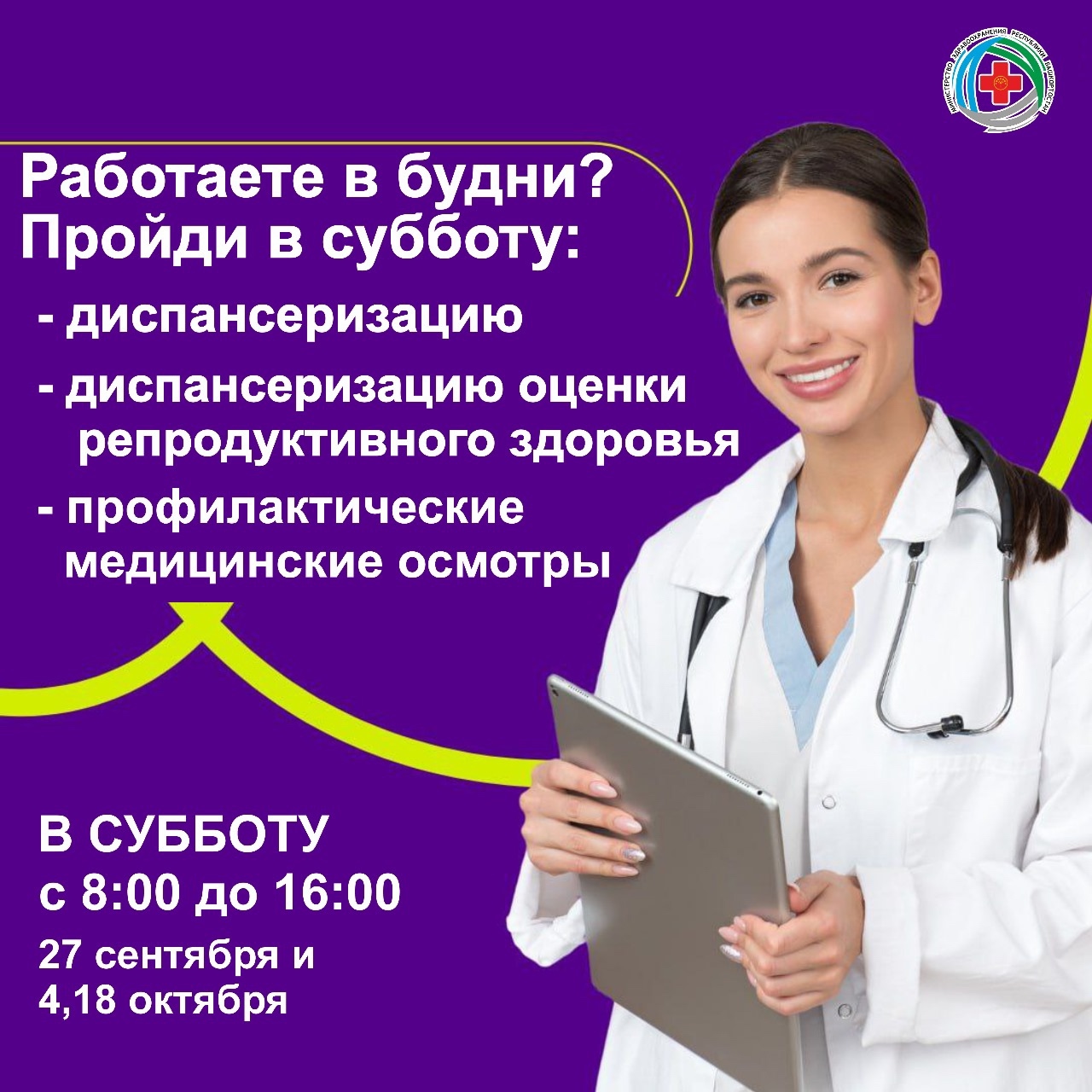 27 сентября в медицинских организациях республики пройдет акция «Диспансеризация в субботу».